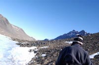 Went for a very small walk today. About 1.5 hours in duration. Very brief for Lake Hoare where people leave at 7AM and don't return until 7PM when dinner is served. We walked up the lake for a while. Dorota had to catch a helo back to town so she didn't have much time and I didn't feel good going off by myself for fear of causing an international incident. The preparation for life at Lake Hoare is significant. The NSF makes you watch several videos that explains why you'll be peeing into barrels and walking keeping away from disturbing rocks and unmolested piles of dirt. The answer is we, the United States of America, have a treaty with the other major nations of the world guaranteeing we won't disturb this place. As representatives of the US of A we have the obligation to follow that treaty.